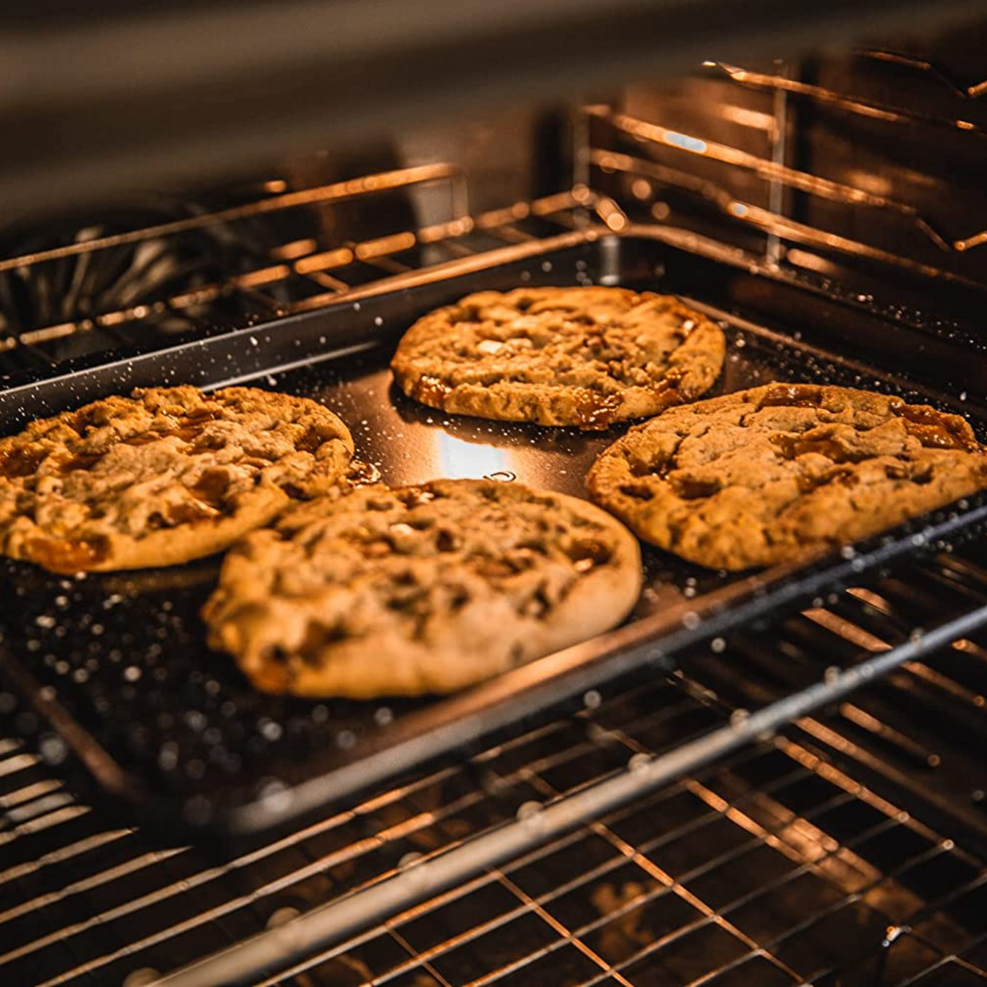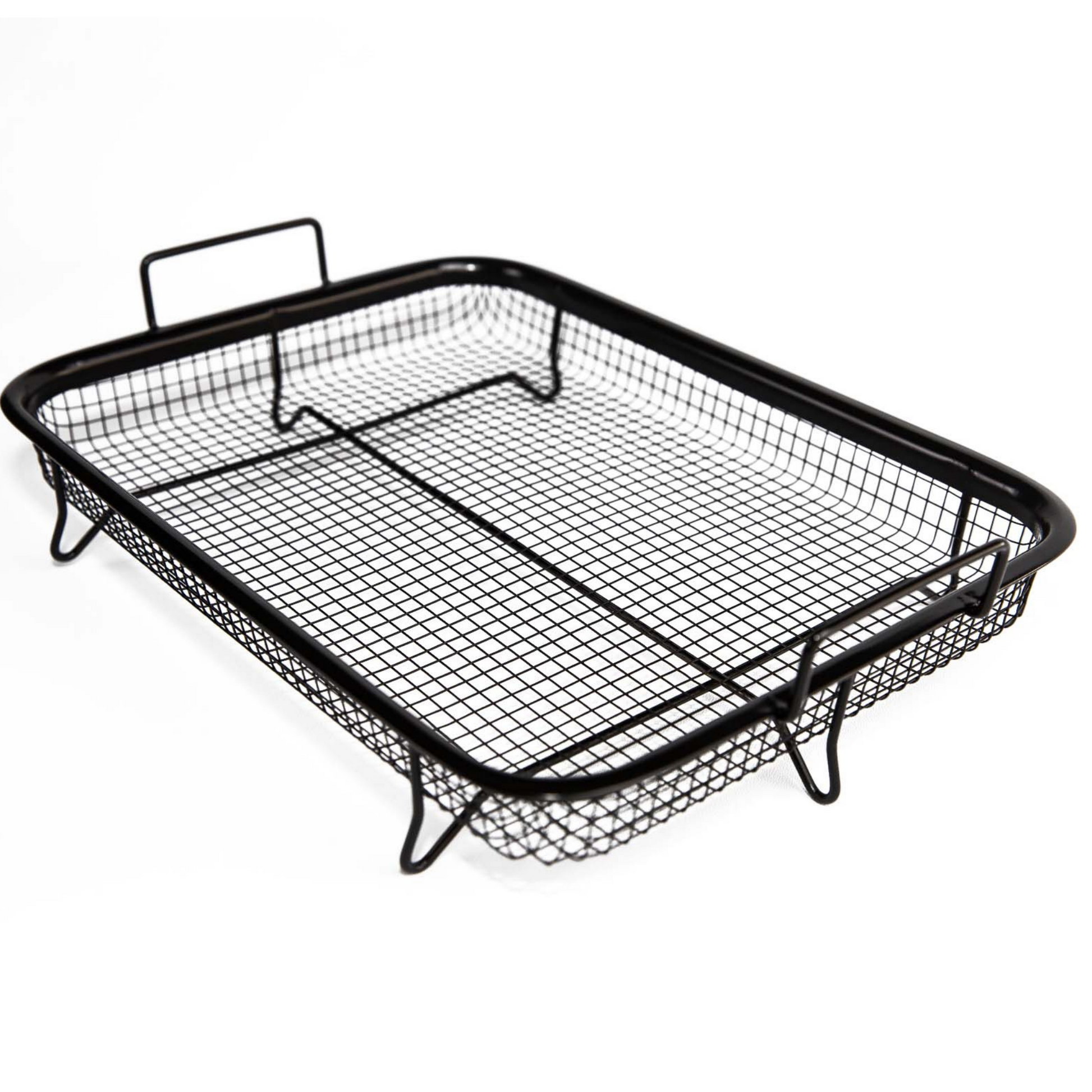 - Pep Performance. Everything that an oven baking tray and air fryer does, is in one package. Includes a PFOA-free non-stick baking tray and a crisping basket. Food is elevated away from chip tray oils and fats for healthier chips, chicken, potatoes, and more. Featuring 360-degree air circulation for even cooking in every direction.
