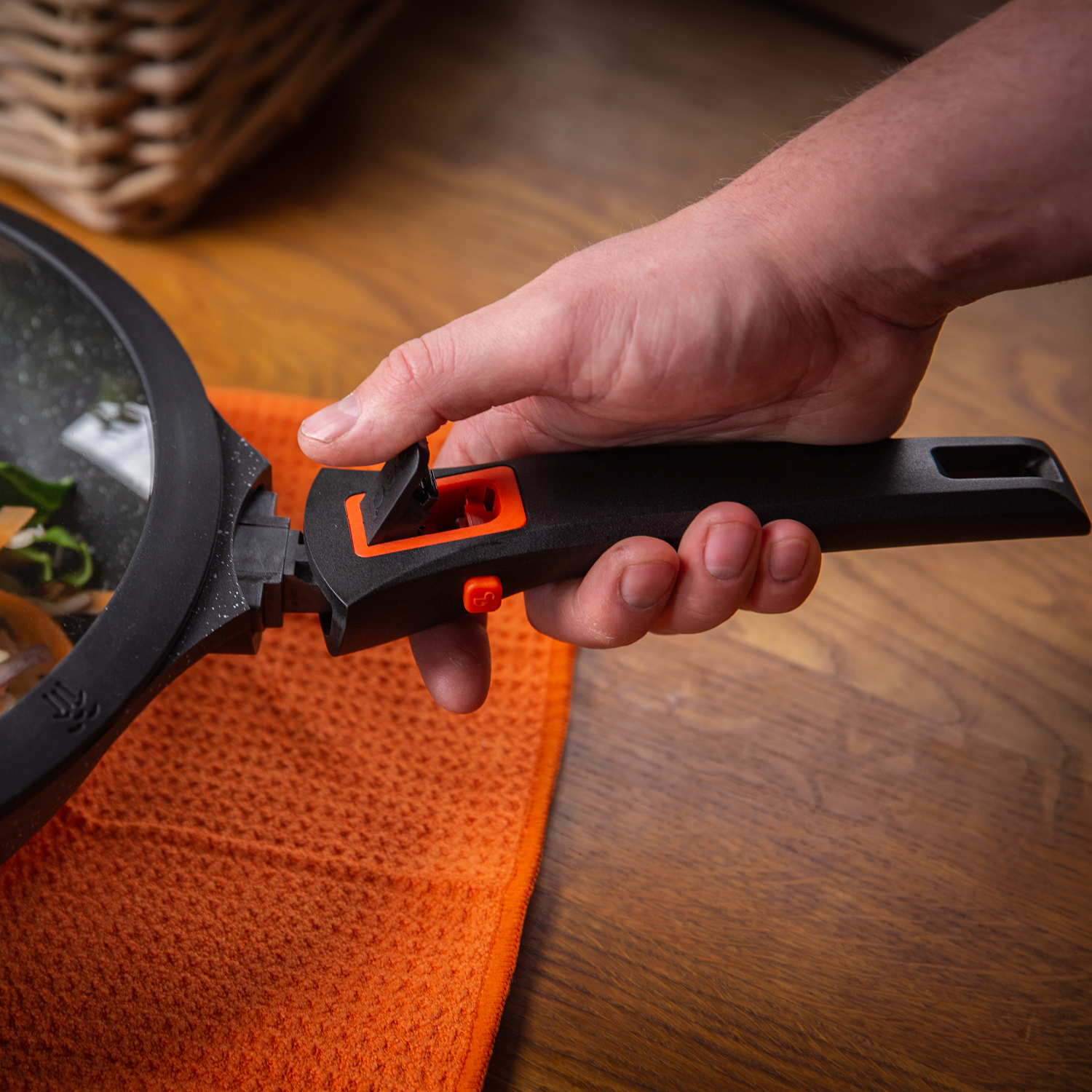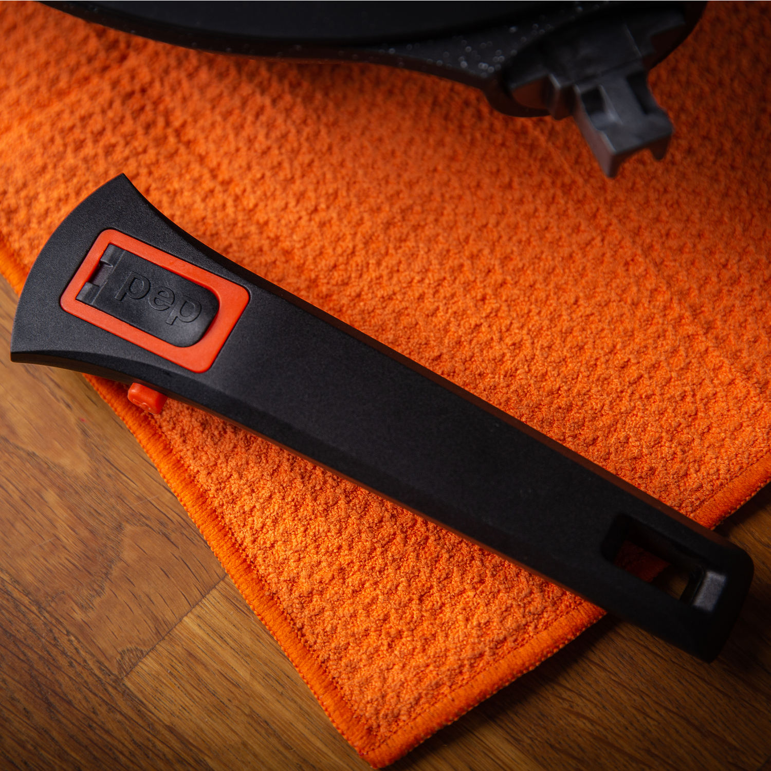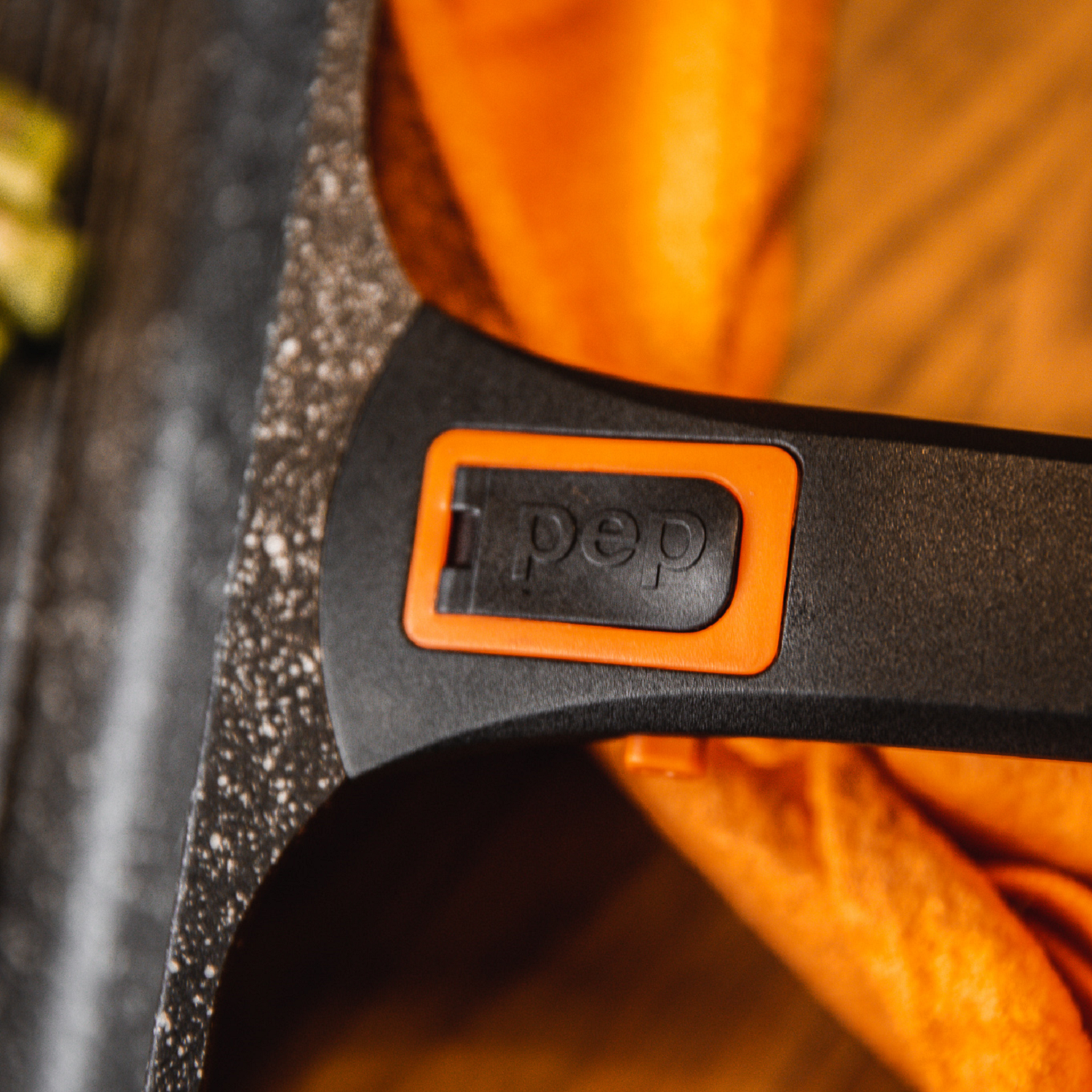 - Spare handle easily clips on and off with the press of a button. Effortlessly swap between pans or hob to oven when cooking with Pep.
